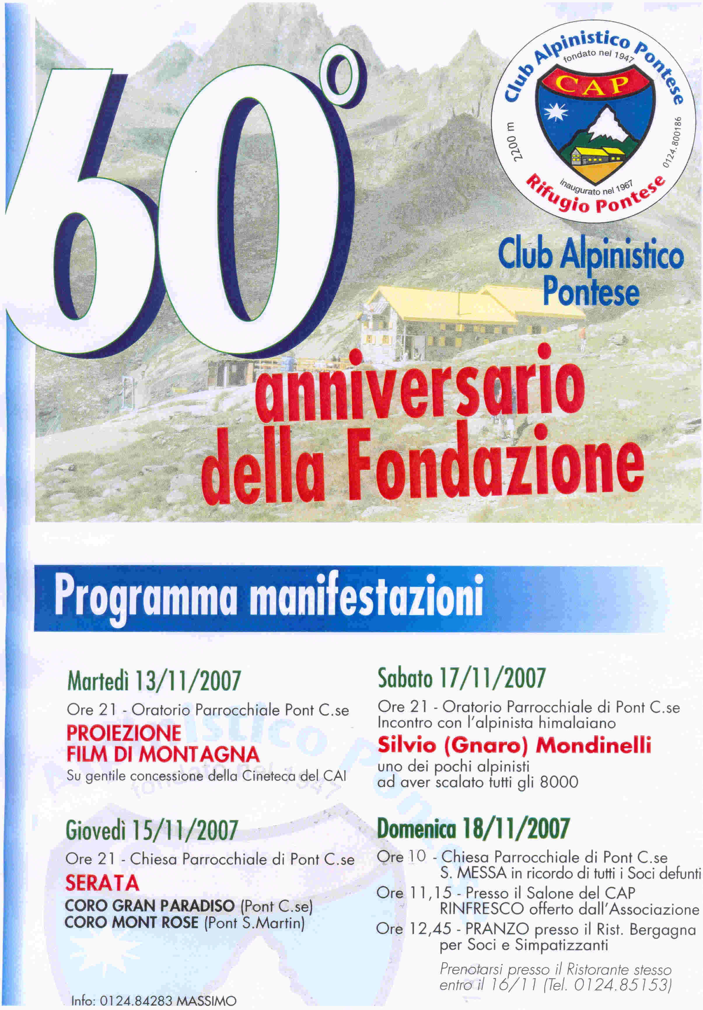 60° Anniversario della Fondazione del Club Alpinistico Pontese