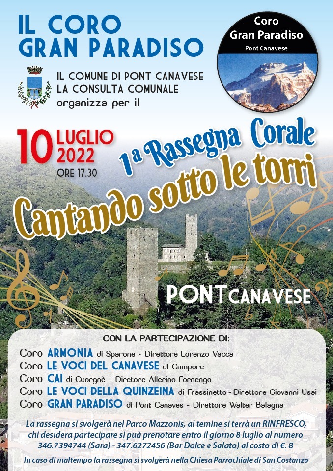 1^ Rassegna corale "Coro Gran paradiso" nel Parco Mazzonis il 10 luglio 2022 dalle ore 17,30.