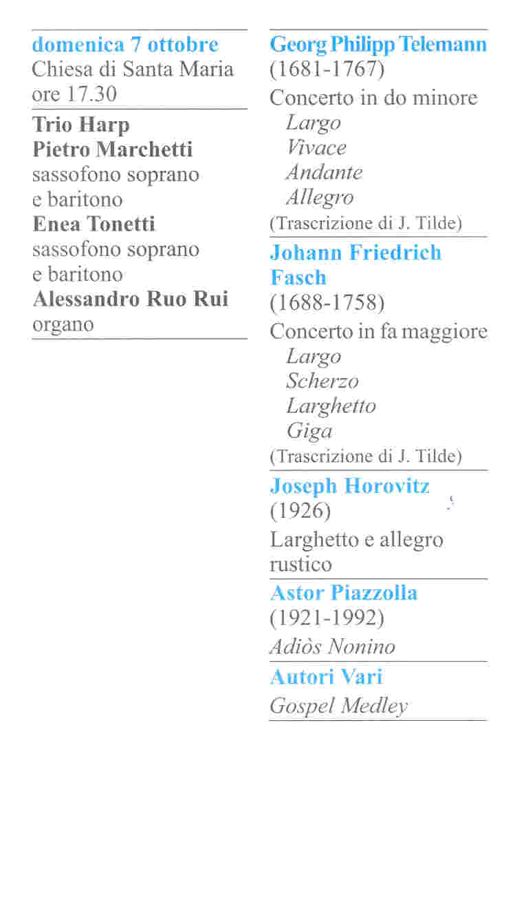 Ore 17,30 presso la Chiesa di Santa Maria del Trio Harp