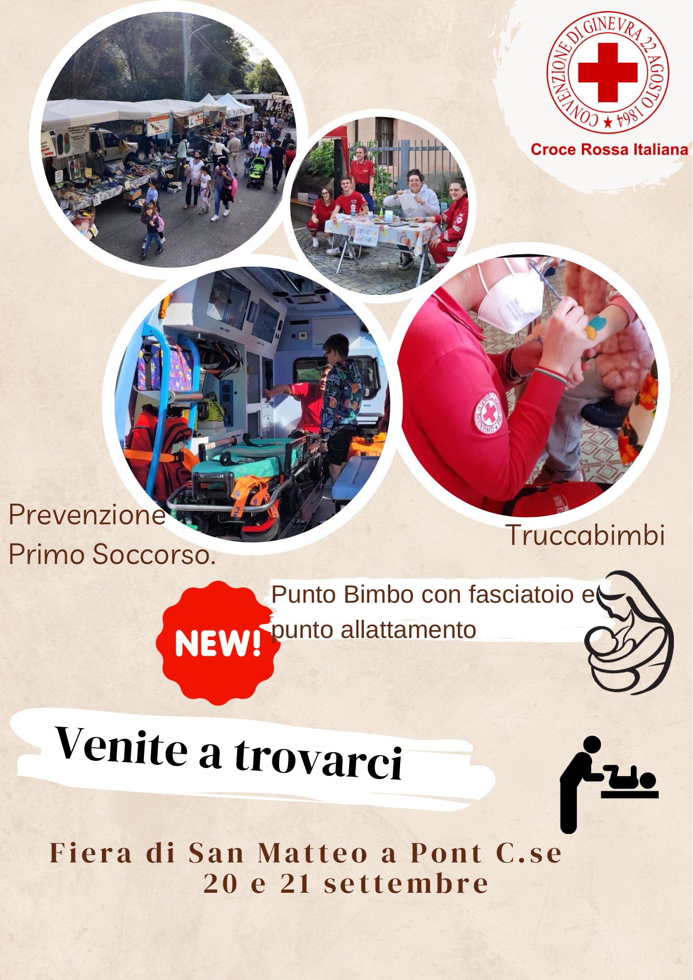 La sezione di Pont Canavese della Croce Rossa Italiana è presente alla Fiera di San Matteo con possibilità di trucchi per i bimbi, prevenzione e pronto soccorso, spazio con fasciatoio e allattamento bimbi