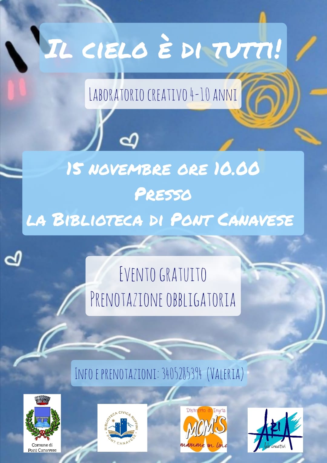 Laboratorio creativo per bambini dai 4 ai 10 anni, sabato 15 novembre 2025 ore 10:00, presso la Biblioteca di Pont Canavese.