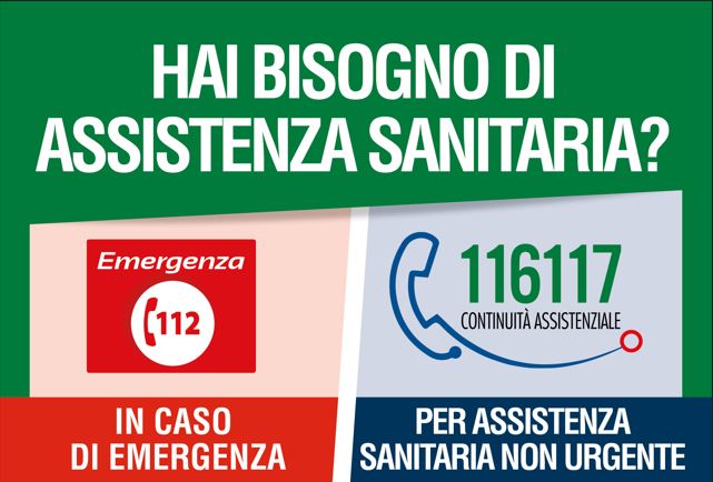 IL NUMERO UNICO PER IL SERVIZIO DI CONTINUITÀ ASSISTENZIALE (EX GUARDIA MEDICA) 116117 garantisce gratuitamente le prestazioni sanitarie non differibili, negli orari non coperti dal medico di famiglia o dal pediatra di libera scelta.