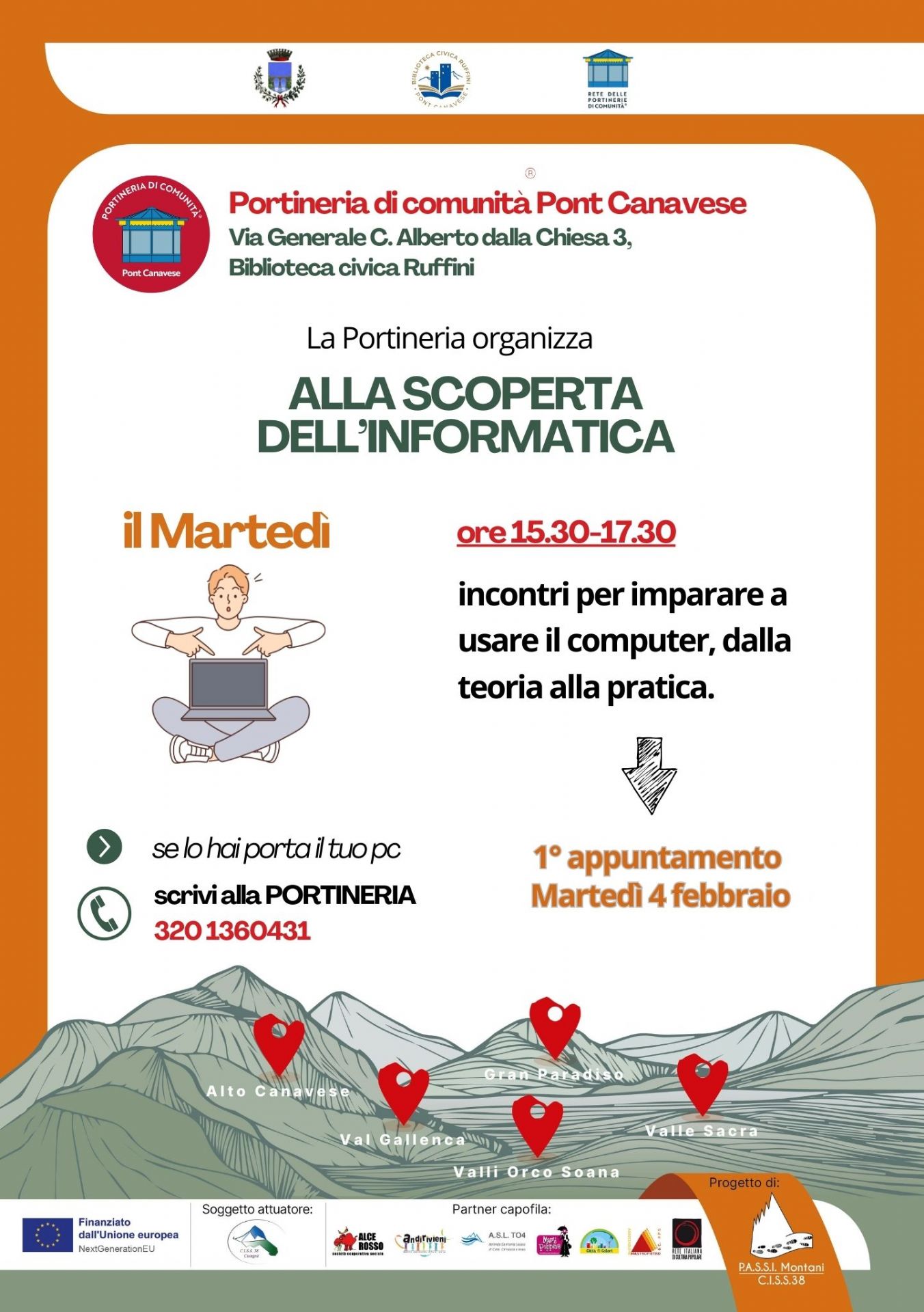 La Portineria di Comunità di Pont Canavese organizza un ciclo di incontri, dalla teoria alla pratica, per affrontare la tecnologia insieme.