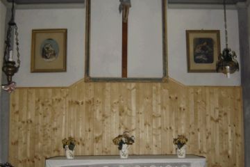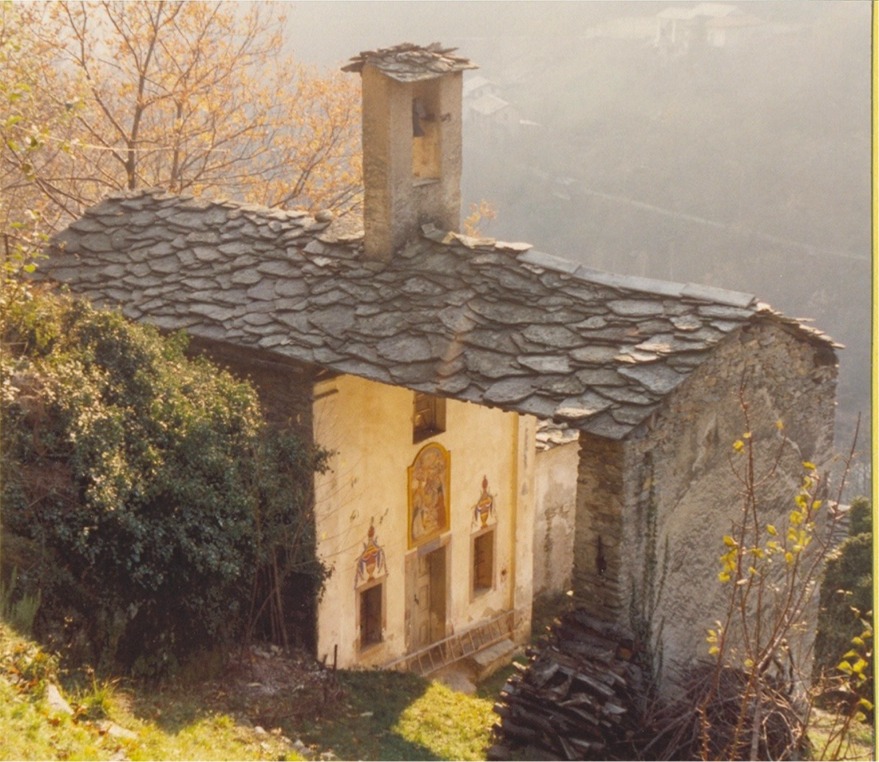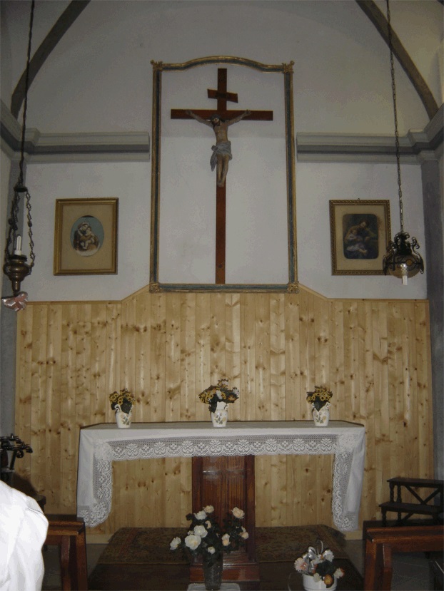 Il primo edificio che si incontra è la chiesetta costruita su una rupe a monte delle case; risale alla metà del 1700 e fu iscritta nel registro delle chiese da Mons. Pochettini nel 1778 come dedicata alla SS. Trinità.