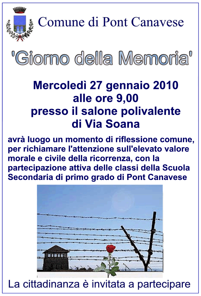 presso il salone polivalente alle ore 9 con la partecipazione delle classi della Scuola Secondaria di primo grado di Pont Canavese