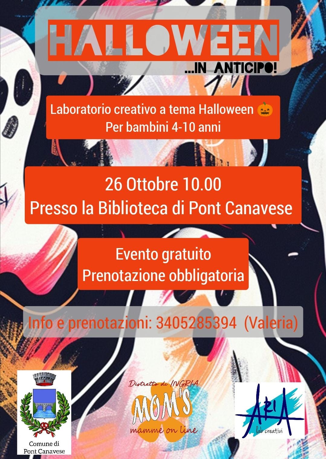 Laboratorio creativo a tema Halloween, per bambini dai 4 ai 10 anni, sabato 26 ottobre 2024 ore 10:00, presso la Biblioteca di Pont Canavese.