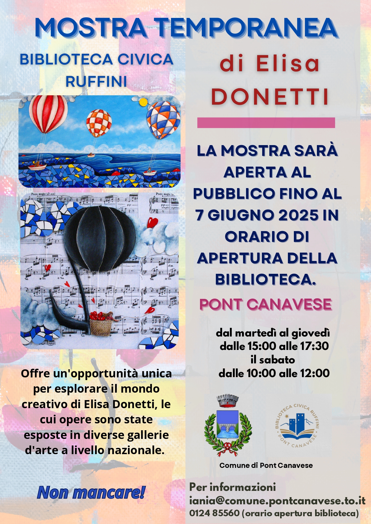 La Biblioteca di Pont Canavese ospita la mostra d'arte temporanea dell'artista pontese Elisa Donetti.