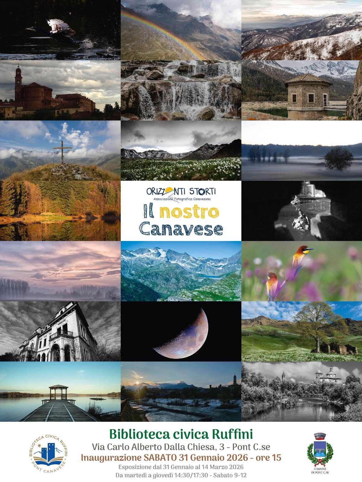 Sabato 31 gennaio 2026 alle ore 15.00, presso la Biblioteca Civica Ruffini di Pont Canavese, verrà inaugurata la mostra fotografica "Il nostro Canavese", curata dall’Associazione Fotografica Canavesana “Orizzonti Storti”.