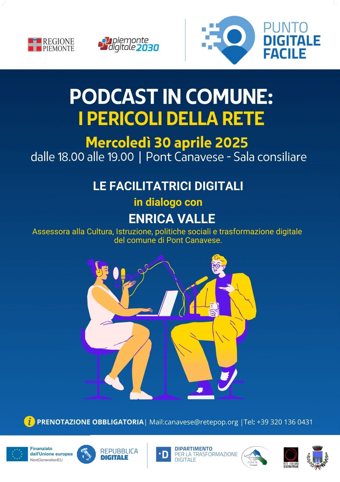 Mercoledì 30 aprile 2025 dalle 18.00 alle 19.00 presso la sala consiliare di Pont Canavese, le facilitatrici digitali in dialogo con Enrica Valle assessore alla cultura, istruzione, politiche sociali e trasformazione digitale del Comune di Pont Canavese.
