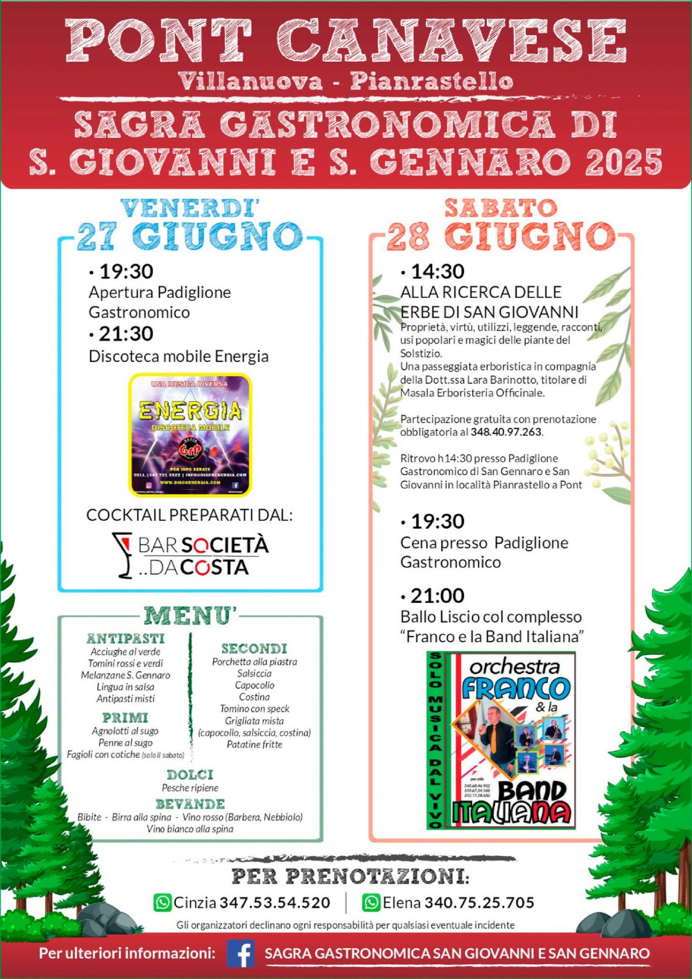 Per prenotazioni contattare i numeri: 3475354520 / 3407525705